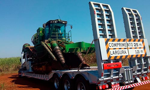 Temos guindaste de 30 a 70 toneladas, munck de 43 e 45, prancha 03 eixo com pescoço removível, carreta 03 eixo extensiva ate 20m e empilhadeira de 3,5 toneladas.